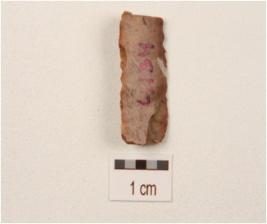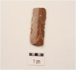 | Description / विवरण | A parallel sided blade made on chert with double ridge, irregular retouches on the cutting edge, broken from both ends, trapezodial in section. |