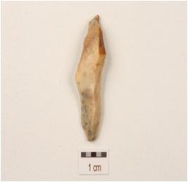 | Description / विवरण | A chert blade made on core, with three blade scars, use-wear marks on the cutting edge, broken on both the ends, trapezodial in section. |