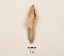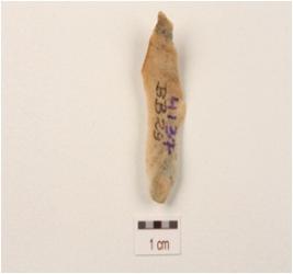| Description / विवरण | A blade made on chert with single ridge, use-wear marks on the cutting edge, triangular in section. |