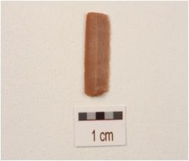 | Description / विवरण | A blade made on chert with single ridge, use-wear marks on cutting edge, broken along both the ends, triangular in section. |