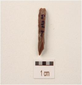 | Description / विवरण | A blade made on chert with single ridge, use-wear marks on the cutting edges, triangular in section. |