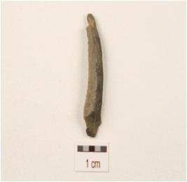 | Description / विवरण | A blade made on chert with single ridge, use-wear marks on the cutting edge, triangular in section. |