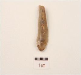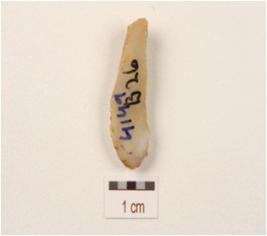 | Description / विवरण | A blade made on chalcedony with double ridge, diffused bulb on the ventral side, use-wear marks on the cutting edges, trapezodial in section. |