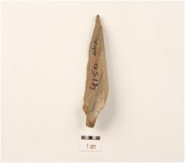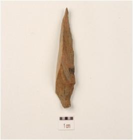 | Description / विवरण | A blade made on chert with single ridge, diffused bulb on the ventral side, pointed at the distal end, use-wear marks on the cutting edges, triangular in section. |