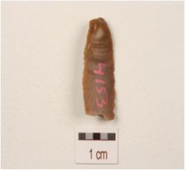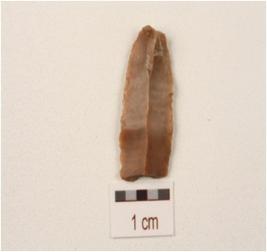 | Description / विवरण | A blade made on chert with single ridge, bulb on the ventral side, use-wear marks on cutting edges, triangular in section. |