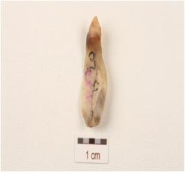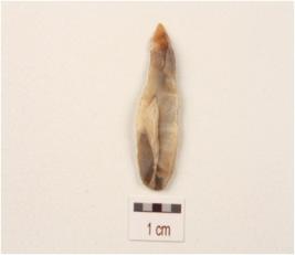 | Description / विवरण | A blade made on chalcedony with a single ridge, use-wear marks on the cutting edges, pointed the distal end, triangular in section. |