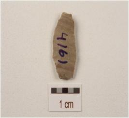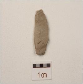 | Description / विवरण | A blade made on chert with single ridge, use wear marks on the cutting edge, trapezodial in section. |