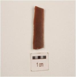 | Description / विवरण | Parallel sided chert blade, poth ends broken, use wear marks on both working edges, two vertical ridges on dorsal surface. |