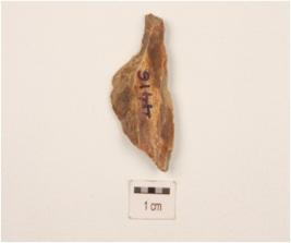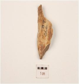 | Description / विवरण | Chert blade, prominent bulb with striking platform,a straight vertical ridge on dorsal surface one convex working edge. |