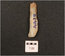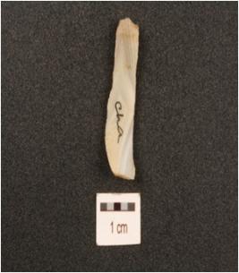 | Description / विवरण | Parallel sided agate blade, diffused bulb, diffused bulb with striking platform, use-wear marks on both working edges, curved end partly broken distal end. |