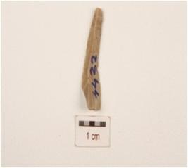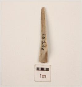 | Description / विवरण | Parallel sided chert blade, one end broken, use-wear marks on both working edge, a straight vertical ridge on dorsal surface. |