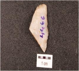 | Description / विवरण | Fragment of a utilized flake on quartz, bulb and platform absent, sharp edge with use-wear marks. |