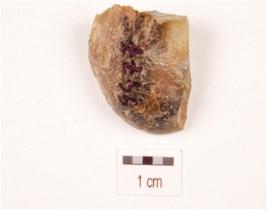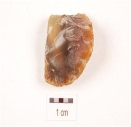 | Description / विवरण | A flake on chalcedony, partly broken, bulb and platform absent, cortex on one side. |