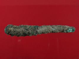 | Description / विवरण | Trench A-3, Stratum Layer 5 This is a copper rod made of copper alloy. Hard patina nad dust is deposited on its surface. Surfaec is rough. Appearance is of green and muddy colour. |