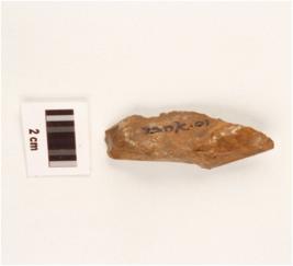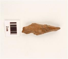 | Description / विवरण | Stone flake with one end pointed and flake scars on the surface. |