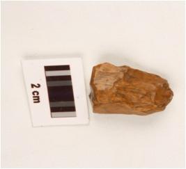 | Description / विवरण | Stone flake with a prominent ridge on a dorsal side, diffused bulb, prepared platform. |