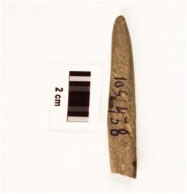 | Description / विवरण | A fragment of soft stone point with smooth surface, partly broken from both ends, square in section, polished surface. |