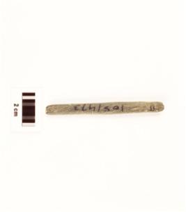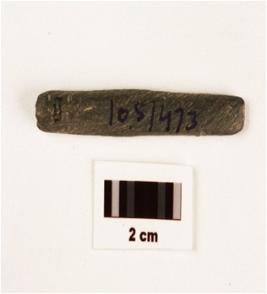 | Description / विवरण | A fragment of soft stone chisel with smooth surface, slightly broken from sharp tip, partly broken from other side, round in section. |