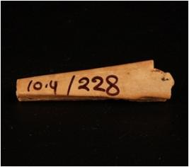 | Description / विवरण | Fragment of a bone point with smooth surface. Conical in shape, both ends are broken, flat base. |