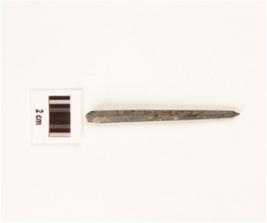 | Description / विवरण | Stone point, both ends broken, circular section, polished surface. |