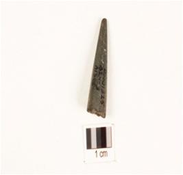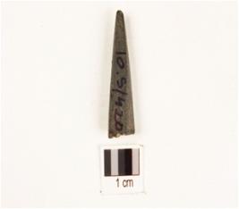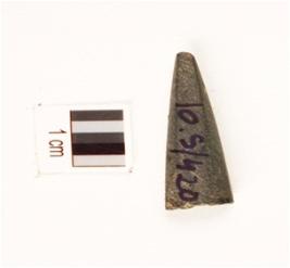 | Description / विवरण | A fragment of soft stone point with sharp point, smooth polished surface, partly broken from one end, rectangular in section. |