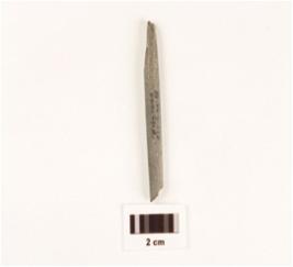 | Description / विवरण | Stone point, both ends broken, circular section, polished surface. |