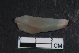 | Description / विवरण | A fragment of a blade having two dorsal ridges. It has smooth surface. |