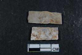 | Description / विवरण | Fragments of blades with two dorsal ridges having smooth surface. Shorter fragment has length equivalent to 2.8 cm. |