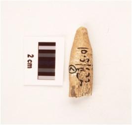 | Description / विवरण | A small bone pont, intact proximal end, distal end is broken, rough surface. |