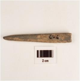 | Description / विवरण | Fragment of himalayan soft stone point, pointed one end, other end broken, rectangular cross section, grey dusty surface. |