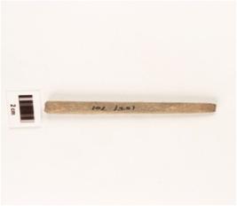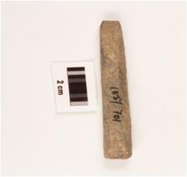 | Description / विवरण | Fragment of himalayan soft stone point, circular cross section, smooth dustly surface, both ends broken. |