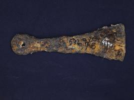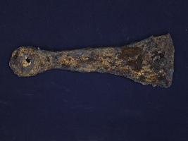| Description / विवरण | It is a Chisel made by iron. Colour is brownish. One side is knob and a hole on it. It is badly rusted and damaged. Surface is rough and rusted. |