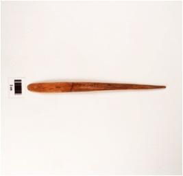 | Description / विवरण | Bone point with flat surface, partly damaged point, mended surface, smooth and polished, brownish lustrous, rectangular in section, convex one end. |