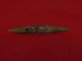 | Description / विवरण | Trench F- 7, Layer 9 It is a stylus made of bone. It is pointed of both ends. Surface is smooth and shiny with brownish appearance. |
