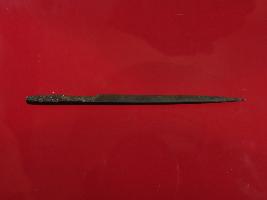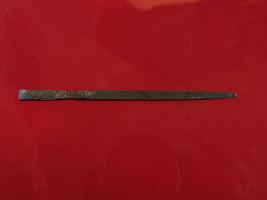 | Description / विवरण | Trench D- 8, Layer 3 This is a chisel made of copper. It has a sharp point. Surface is smooth and appearance is of copper brown. |