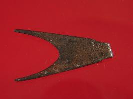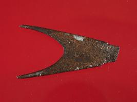 | Description / विवरण | Trench F- 8, Layer 6 This is an arrow head made of copper. It has two pointed ends. Shape is triangle and surface is smooth. Appearance is copper brown. |