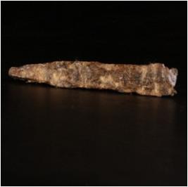 | Description / विवरण | Iron knife or chisel with a thin edge, one end is pointed and other is flat, partly broken, rough surface, rusted. |