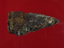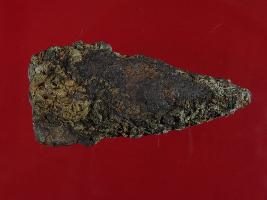 | Description / विवरण | Trench C- 34, Layer 2 This is an arrow head made of iron. Heavy rust deposited on it. It is badly corroded and deformed. Colour of object is brown. |