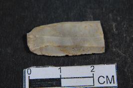 | Description / विवरण | Fragment of blade with positive bulb of percussion on its ventral side,two dorsal ridge and smooth surface. |