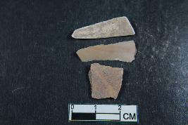 | Description / विवरण | Fragment of blade with two dorsal ridges and smooth surface. Other blade has one dorsal ridge. |