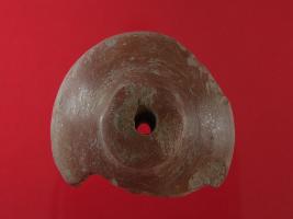 | Description / विवरण | Stratum Layer 6 Wheel made of baked clay. It is damaged and lost on the one side. It has a hole through it and irregular marks on its surface. It is thickened in the middle and tapering towards the ends. Surface is smooth and appearance is of brown colour. |