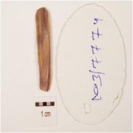 | Description / विवरण | A blade, made on chert with double ridge on dorsal side, use-wear marks on cutting edge and trapezoidal in section. |