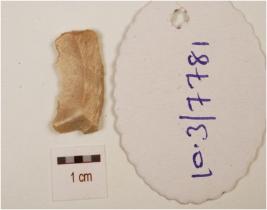 | Description / विवरण | A blade, made on chert with prominent mid ridge on dorsal side, use-wear marks on cutting edge and triangular in section. |