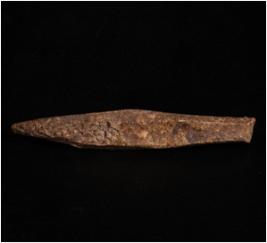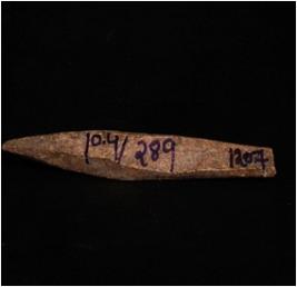 | Description / विवरण | Handmade bone point, dark brown in colour. It has sharp top and flat body. Edges has ridge uneven and rough surface. |