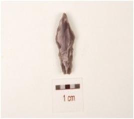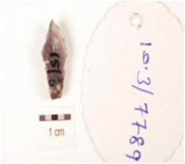 | Description / विवरण | A blade, made on chert with prominent mid ridge on dorsal side, triangular in section and use-wear marks on cutting edge, prepared platform and bulb on ventral. |
