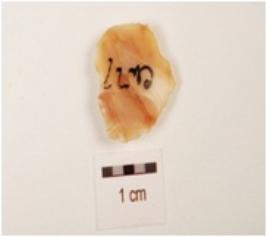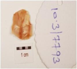 | Description / विवरण | A utilized flake, made on chert with flake scars on dorsal side, use-wear marks on edge and triangular in section. |