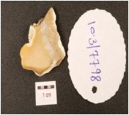 | Description / विवरण | A flake, made on chert with cortex on dorsal side, bulb on ventral side and prepared platform. |