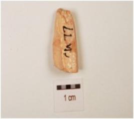 | Description / विवरण | A core, made on chert with seven blade scars on surface, prepared platform and smooth surface. |