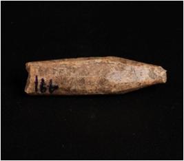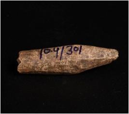 | Description / विवरण | Handmade bone point, brown in colour. Circular in shape and smooth surface. Similar to point but it has only one end pointed other end has thicker. Circular cross-section. Well polished object. |