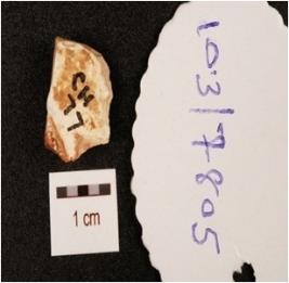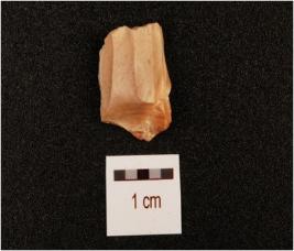 | Description / विवरण | A core, made on chert with five blade scars on surface and prepared platform. |